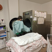 Zelený ostrov je součástí sociálního podniku Teamium pod vedením Jana Kloučka a nachází se zde prádelna, kde na chráněných pracovních místech pracují lidé s různými zdravotními handicapy.